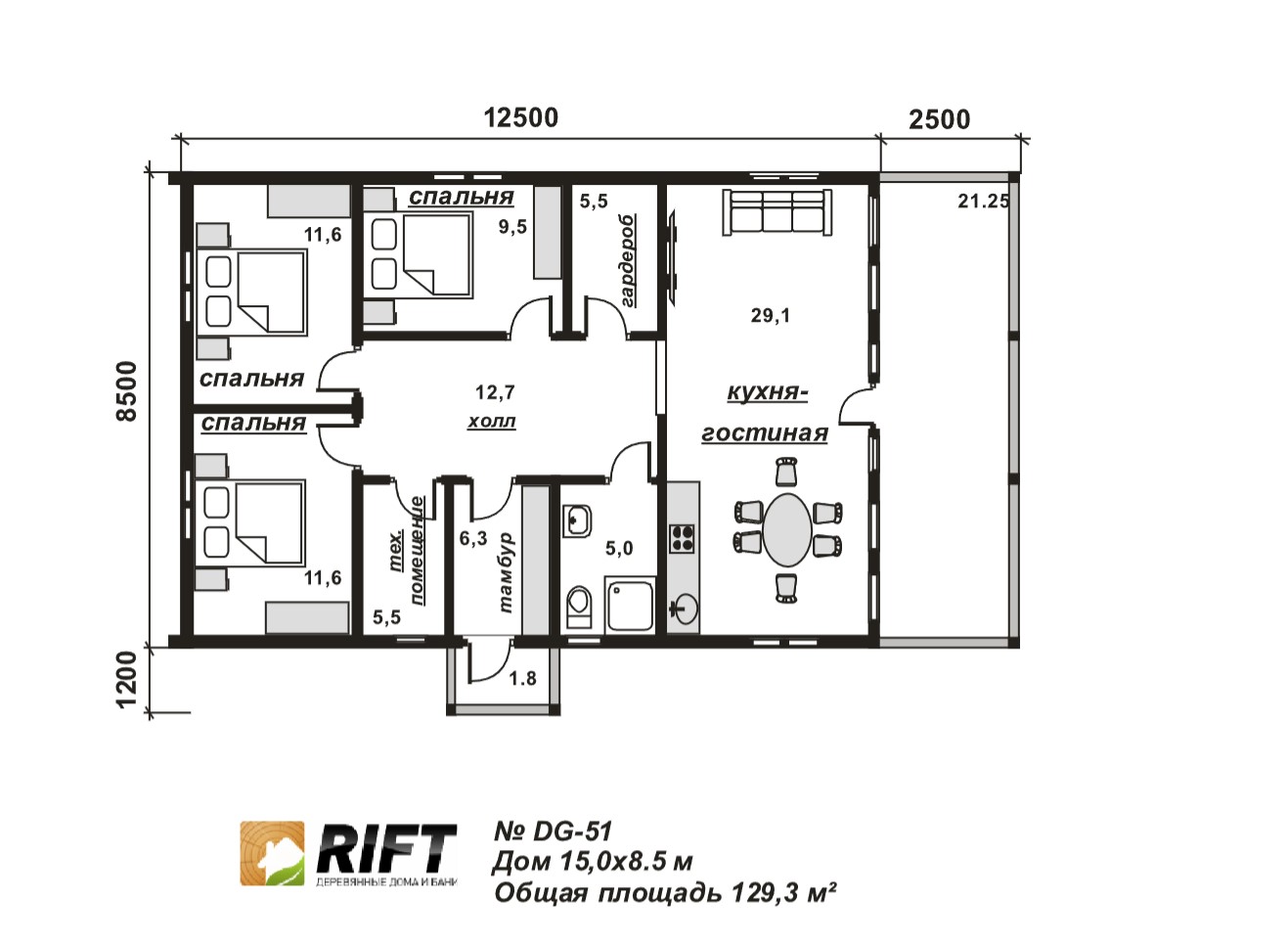 Пол | Черновой пол выполняется из доски 25 мм, чистовой пол выполняется из OSB-3 толщиной 18 мм | |